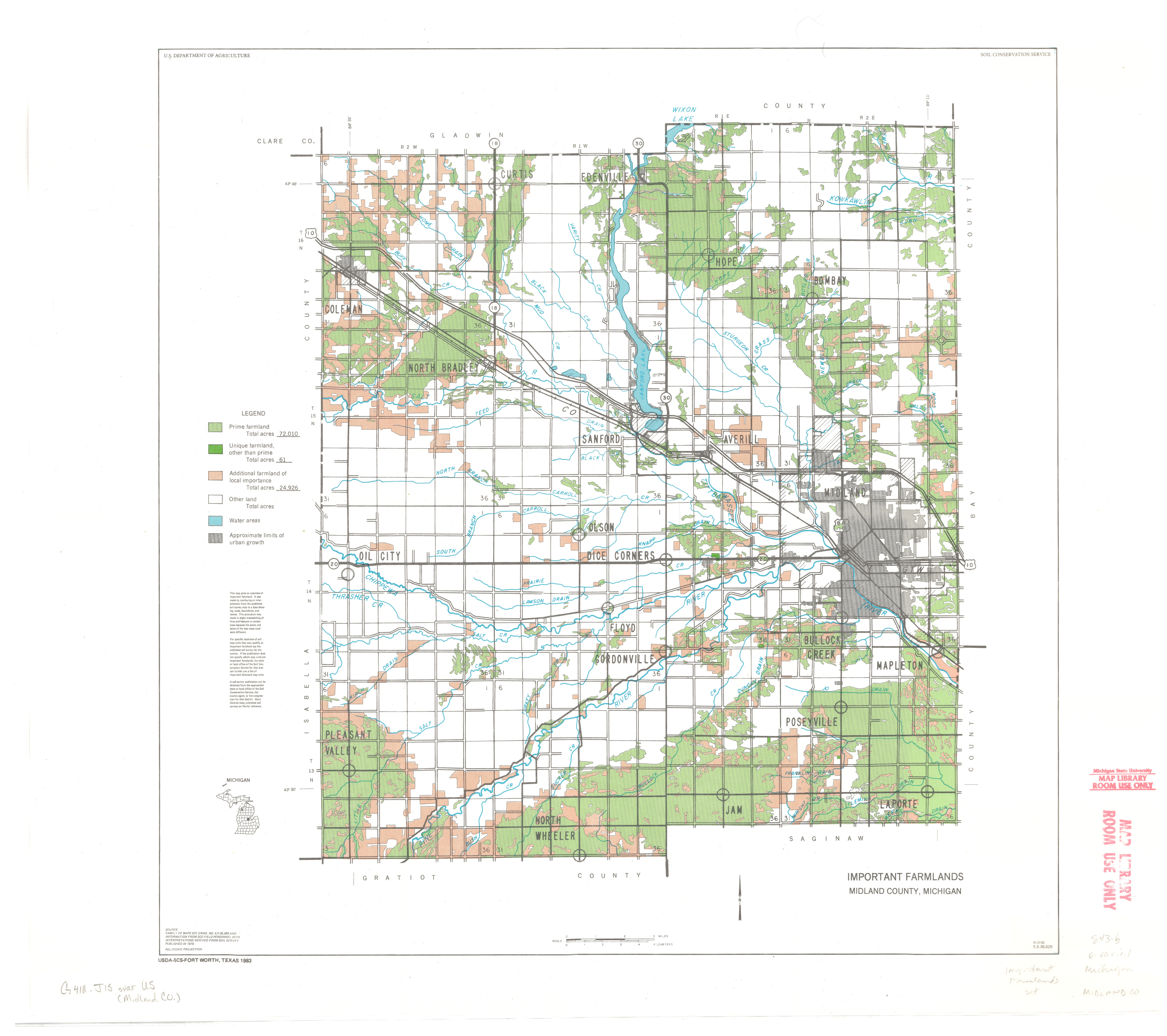 United States. Soil Conservation Service (1982). Important farmlands, Clare County, Michigan. Soil Conservation Service. https://d.lib.msu.edu/maps/995 (map)